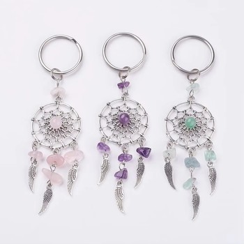 Llaveros atrapasueños de cristal con piedras preciosas mixtas naturales al por mayor llaveros de piedra curativa para regalo